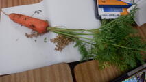 今日は新座で農家をされている方が「学習に使ってください」と、葉のついたにんじんを持ってきてくださいました。
