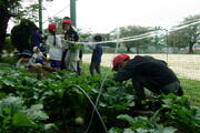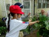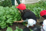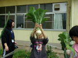 1年生で習った「おおきなかぶ」のお話を思い出しながら、「うんとこしょ どっこいしょ!」と言ってかぶを抜きました。
