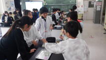 4月27日(月) 6年生理科「ものを燃やすはたらき」 投稿: 新座小管理者 (18:46) 6年生の理科では「ものを燃やすはたらき」について学習しています。 今日は、次回行う実験に向けて確認をしていました。 気体検知管という器具を使い、ものを燃やす前と後で空気の成分がどのように変化するのかを調べます。 実際に器具に触れながら、使い方を確認していました。 役割分担もしっかり行っていたので、次の実験はスムーズに行われるのではないかと思います。