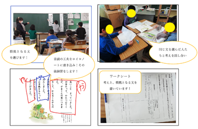 | 成果 | ・4CH モデルを取り入れることで、全児童が自分の考えをもって、学習に参加できた。 ・ロイロノートで音読練習をし、録音することで学習の蓄積ができた。繰り返し聞くことで、音読の技能が向上し、音読劇に繋がった。 |